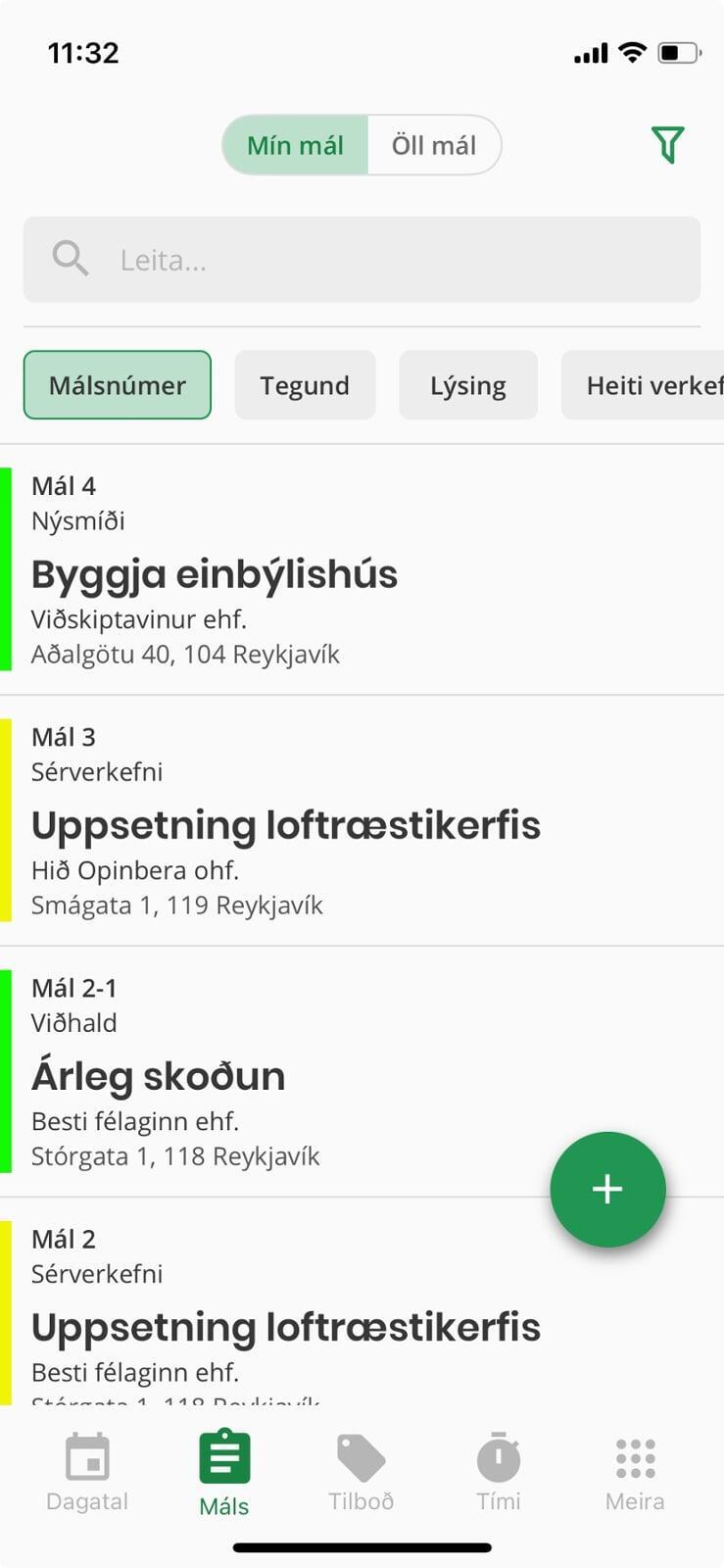 - Öll verk á einum og sama staðnum. Stök verk, aðalverk, undirverk, uppsetningar og reglubundin þjónustuverkefni.