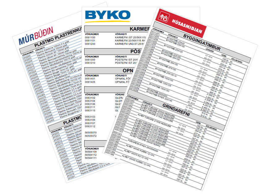 Verðlistar frá birgjum